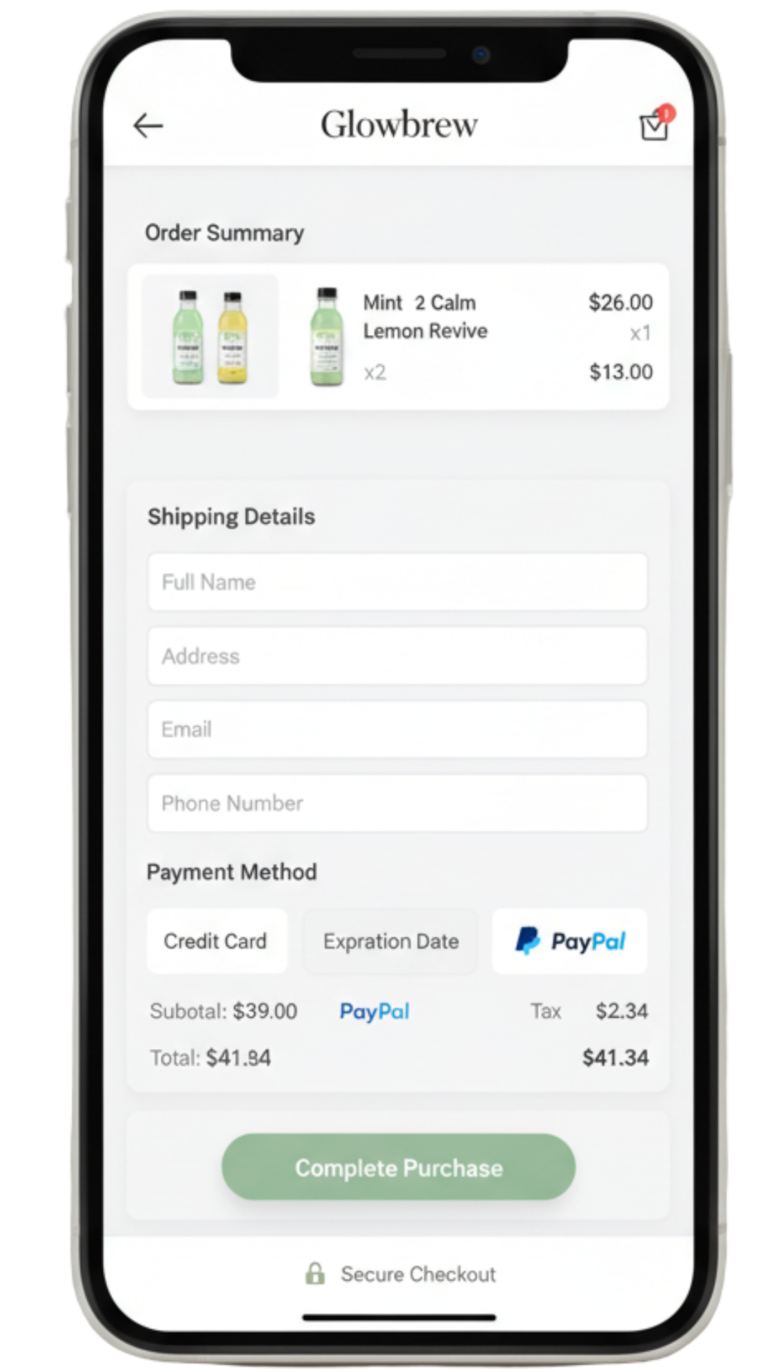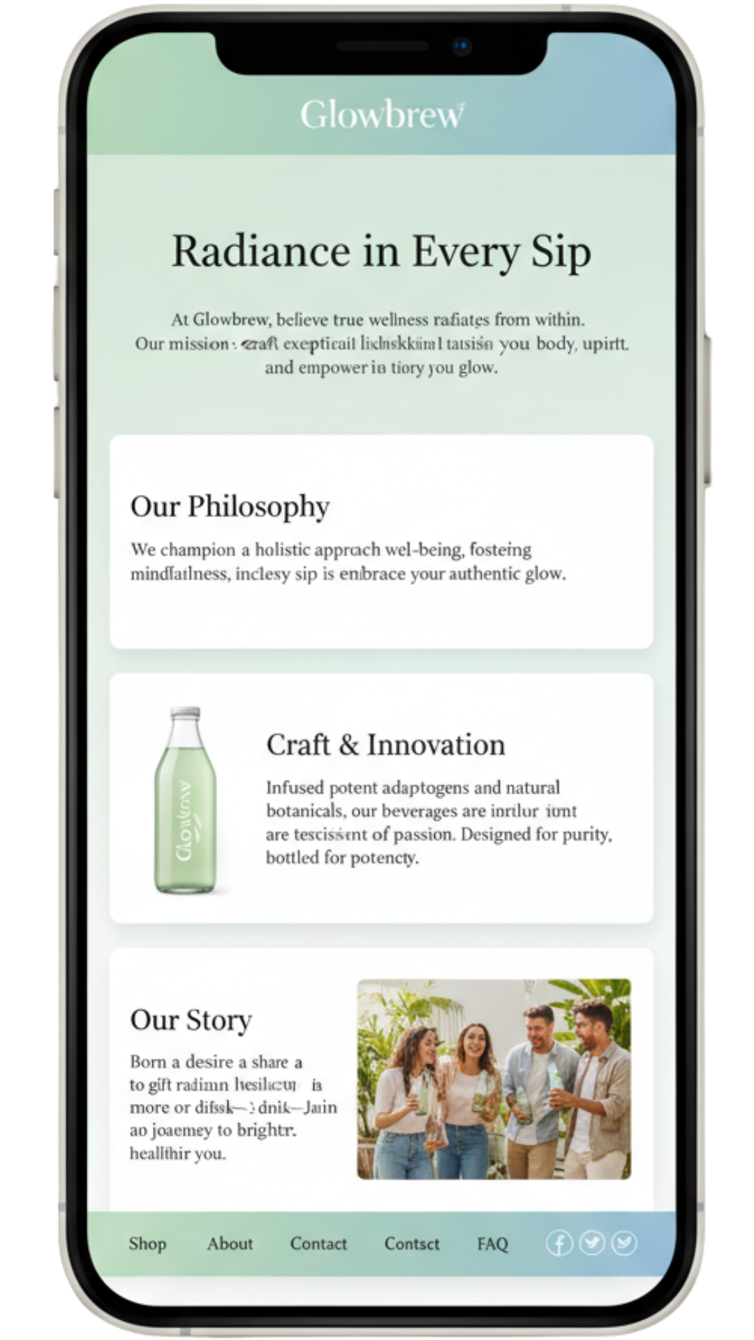 GlowBrew now presents a brand that mirrors its product promise. It looks refreshing, premium, and thoughtful. The identity and packaging convey the right tone to a health and trend conscious audience, positioning GlowBrew to compete confidently in a crowded beverage market.